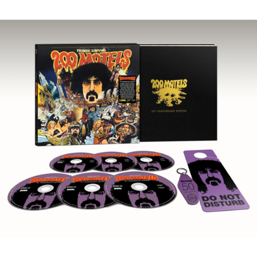 Frank Zappa’s “200 Motels” turns 50! In celebration of FZ’s famous 1971 “Surrealistic Documentary,” Zappa Records, UMe and MGM are pleased to present an extensive 6-disc box set. Contains the original soundtrack remastered by Bernie Grundman at Bernie Grundman Mastering along with a massive amount of never-before-heard audio documentary material surrounding the project. Unearthed from FZ’s Vault are original demos, studio outtakes, work mixes, interviews and movie ads along with newly discovered dialog reels revealing an early audio edit of the film. This incredible set contains a replica of the movie poster, a custom motel keychain, Do-Not-Disturb motel door hanger and the original 1971 soundtrack packaging along with new liner notes from Pamela Des Barres, Ruth Underwood and Vaultmeister, Joe Travers.”